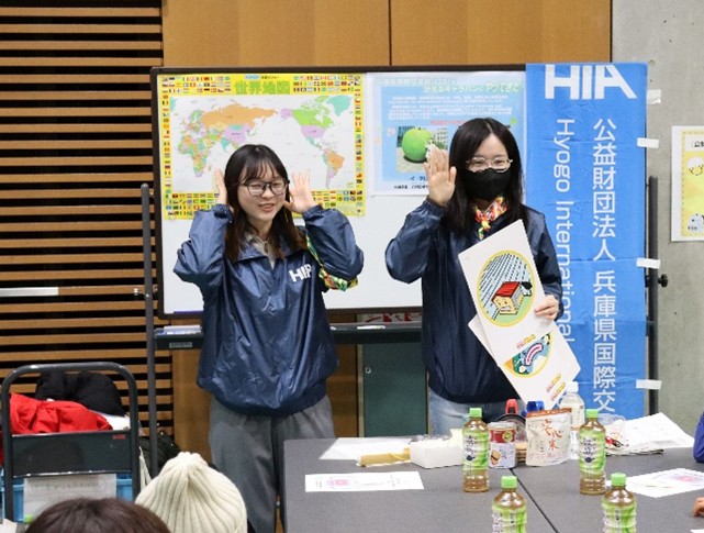 兵庫県国際交流協会は日本国際連合協会兵庫県本部との共催で、災害発生時の行動についてクイズと動作を通じて学ぶ「防災ダック」、そして防災グッズについて考える「災害にそなえて『防災バッグ』を作ろう!」の2種類を多言語(英語、韓国語、中国語)で実施しました。